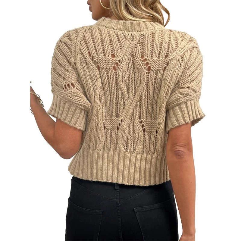 Os fabricantes profissionais de suéter feminino de mangas curtas ocas podem produzir suéteres de diferentes tecidos. Seja textura ou estilo de tecido e alfaiataria, eles têm vantagens óbvias. Os tecidos de algodão são muito adequados para a pele e confortáveis, adequados para compra e desgaste a longo prazo. Vale a pena notar que os blusas de algodão têm uma certa probabilidade de encolhimento; portanto, após a compra, eles precisam ser lavados e secos de acordo com as instruções para evitar retração e deformação causadas por lavagem e secagem inadequadas.