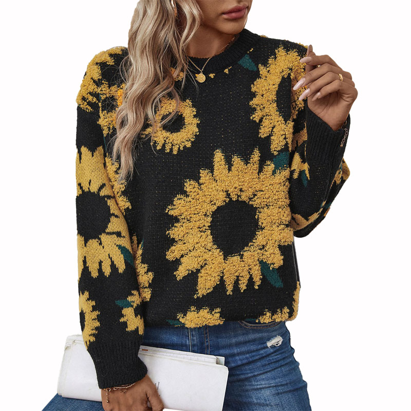 West Bull Bridge (Zhejiang) is Sunflowers Crew Neck Pullover Sweater manufacturers and suppliers in China who can wholesale Sunflowers Crew Neck Pullover Sweater Children. Our sweater fabric is light and soft, has a good skin-friendly feel, and has a natural matte luster.